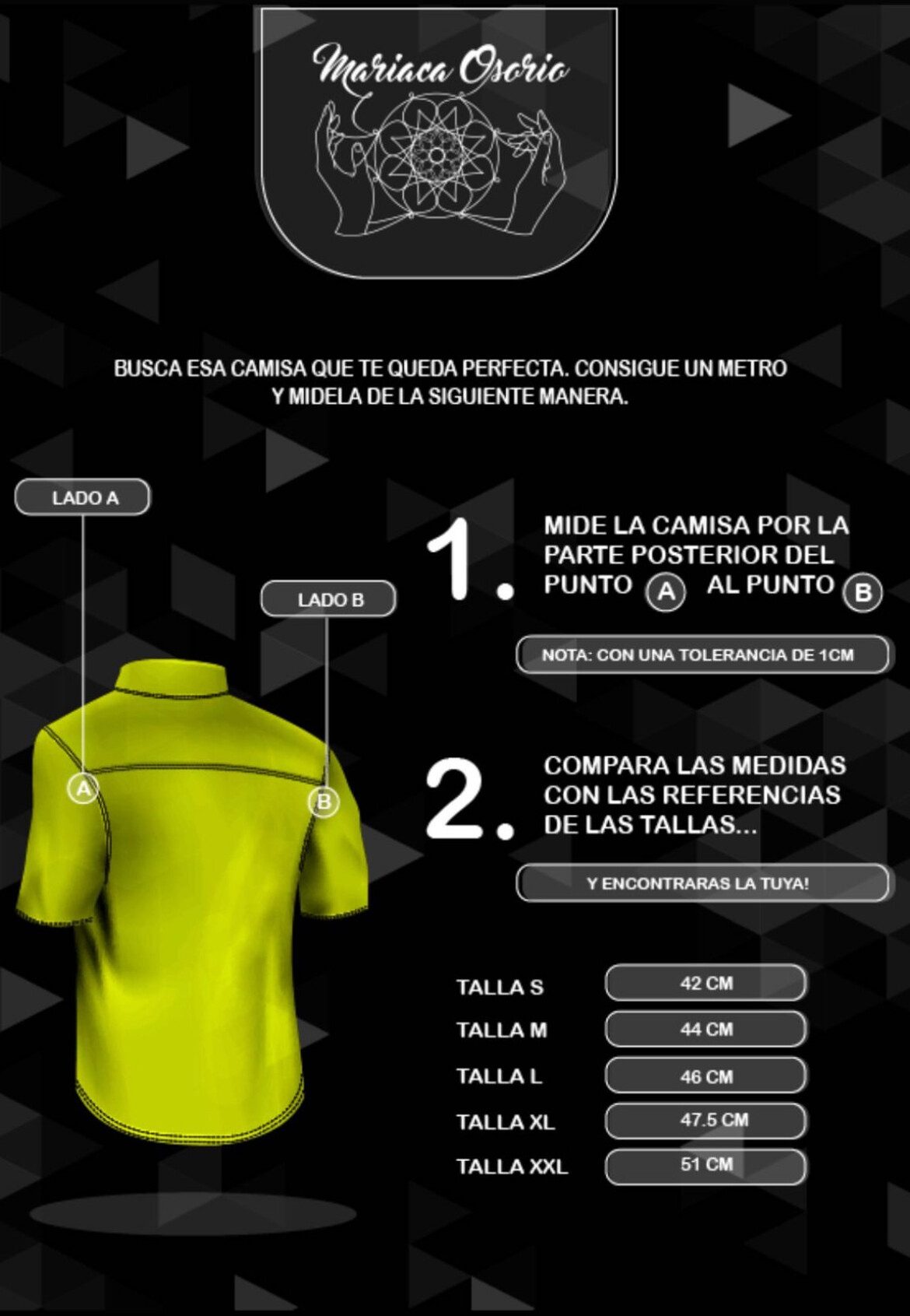 Camisa de hombre, manga corta, color blanco con formas en negro.