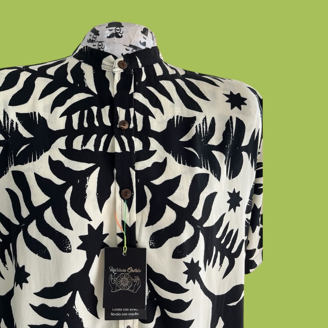Una camisa para el hombre contemporáneo que valora el arte y la autenticidad. Confeccionada en algodón premium de manga larga, este diseño presenta un estampado único de geometría sagrada inspirado en los atardeceres del Caribe, donde el azul índigo se funde con dorados terrosos.
